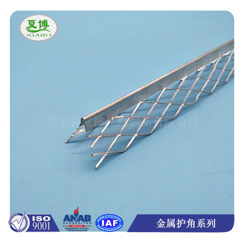 金属拉网护角主要用于建筑物的墙角保护,特别是在灰泥工程中,它可以在棱线上形成直边,抵抗破裂或龟裂,保护并补强灰泥最脆弱的部分。金属护角条的网翼可以牢固地锚入所抹灰泥的全部深度中,增强墙角的牢固度,防止墙角在撞击时受损。金属拉网护角具有多种优点。首先,它采用高质量镀锌材料制成,具有防老化、耐腐耐火、防生锈的特性。其次,金属护角条的锐角尺寸设计可以均匀分散外力,保护阳角完好无损。此外,金属护角条施工方便,初级抹灰工也能快速完成墙角直线,缩短施工时间,降低施工成本。金属护角条还具有防腐防锈、金属韧性好、受力抗强度强的特点,能够承受一般的冲压力,保证墙角不易损坏。