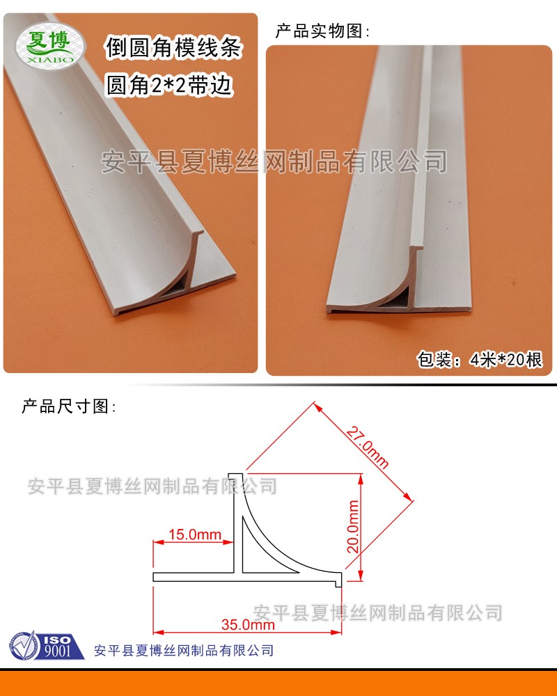 我公司生产的混凝土倒角线,被广泛的用在热电厂,变电纺,火电厂,地铁等大型基建场地,用作做圆角的倒角模板,其用PVC材料模具冲压而成,其牢固度不比金属的差,而且造价便宜,深受客户亲睐,我们生产的T型混凝土角线有大号、中号、小号,大号的直角高度是3.3cm,中号的直角距离是2.5cm,小号的直角距离是1.5cm,也可以定做特殊规格尺寸,只要您提供图纸,尺寸,有具体规格,欢迎您的来电!现贷规格分为2.5cm.3cm.4cm.7cm的